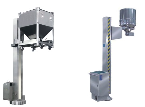 The machine consists of components such as chassis, pillars, and lifting system. When working, first push the hopper containing materials onto the lifting fork of the hopper elevator. Then activate the lifting button, and the hopper performs lifting motion. After the hopper is in place, rotate the chassis and connect it tightly with the feeding equipment. Open the discharge butterfly valve to transfer the material tightly to the next process.